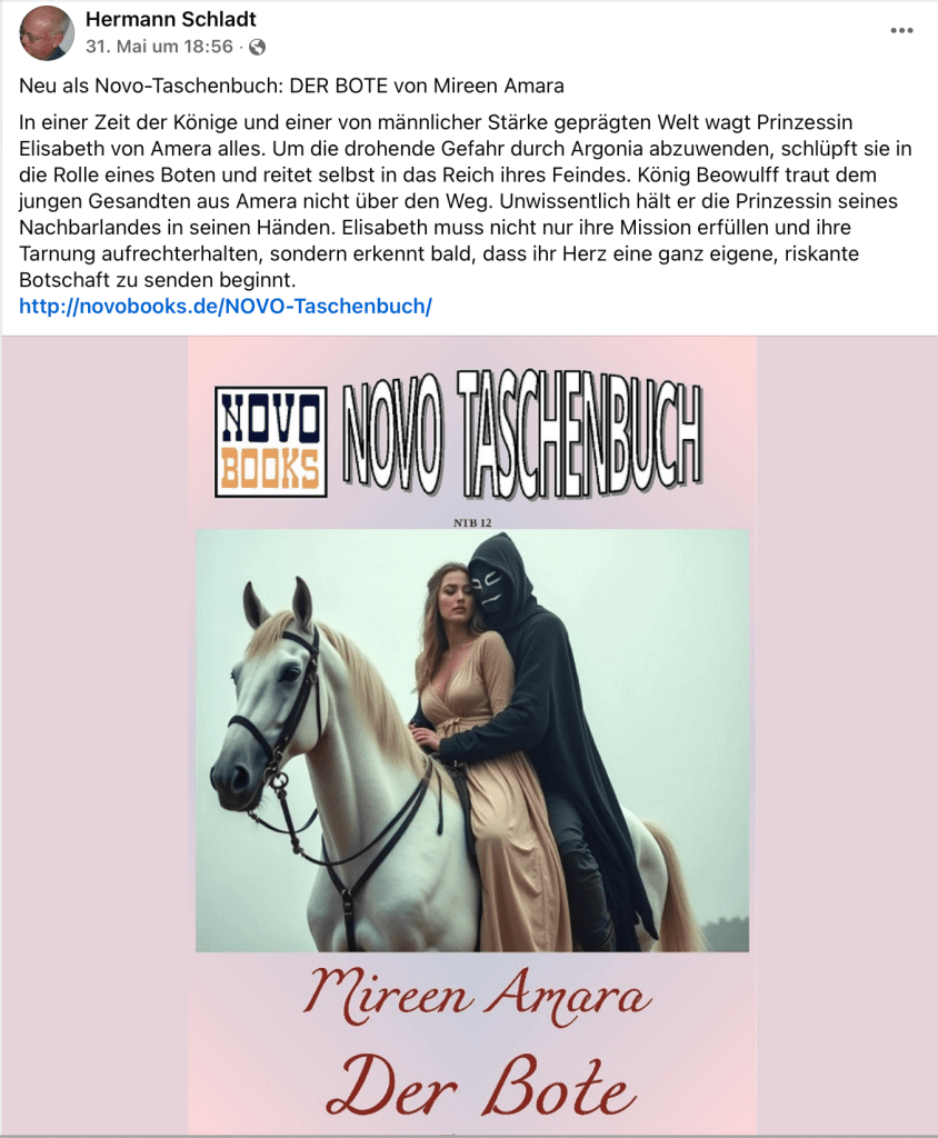 Mireen Amara konnte im Mai 2025 ihr Buch “Der Bote” über den VSS-Verlag veröffentlicht sehen. Wir freuen uns sehr über die Nachricht des Verlegers Hermann Schladt auf Facebook.