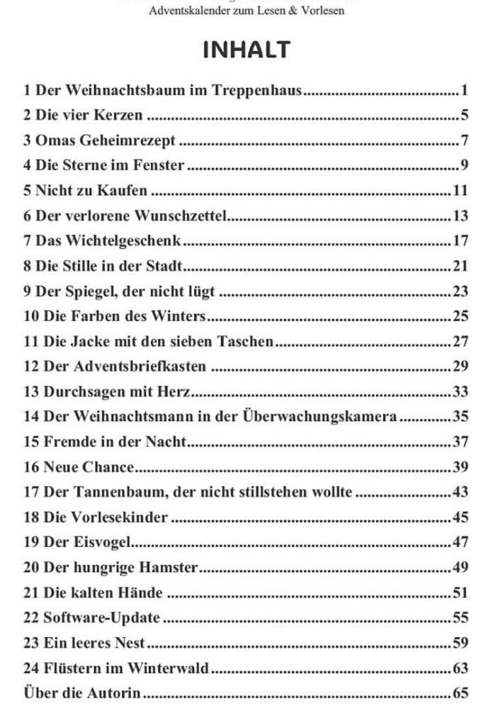 Aus Alltagsbeobachtung heraus hat Henriette diese Geschichten entworfen. Viele der Kurzgeschichten sind wirklich passiert, bei anderen flunkert die Autorin ein bisschen. Die 24 vorweihnachtlichen Kurzgeschichten sollen dabei helfen, in den dunklen Wochen bis zum großen Fest zur Ruhe zu kommen, etwas zu reflektieren oder einfach nur ein bisschen Freude zu haben.