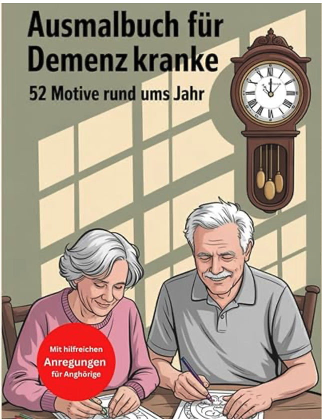 Besonders berührend ist ihr zweites Werk: Ausmalbuch für Demenzkranke: 52 Motive rund ums Jahr. Dieses Buch begleitet Menschen mit Demenz durch das Kalenderjahr – mit vertrauten, thematisch passenden Motiven, die Erinnerungen wecken und Gespräche anregen. Eine einfühlsame Anleitung für Angehörige zeigt, wie gemeinsames Ausmalen zu einem liebevollen Ritual werden kann, das Nähe schafft und kreative Impulse setzt.